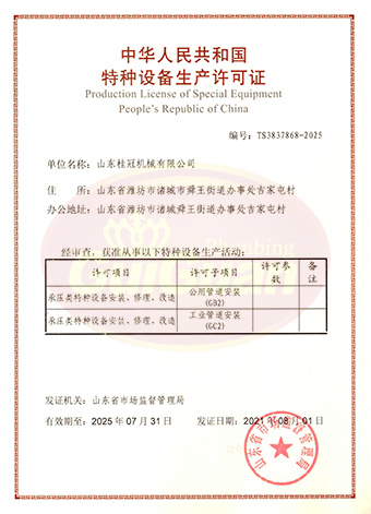 山東桂冠機(jī)械有限公司成立于2008年,注冊資金1600萬元,現(xiàn)有員工200多人,中高級技術(shù)管理人員45人,占地面積27000多平方米,生產(chǎn)車間面積12000多平方米。公司具備壓力容器產(chǎn)品的設(shè)計(jì)、制造(證書編號(hào)為:TS2237703-2025)、壓力管道安裝(證書編號(hào)為TS3837607-2025)全套壓力容器資質(zhì);通過國家ISO9001質(zhì)量管理體系認(rèn)證、美國ASME認(rèn)證、歐盟CE認(rèn)證;擁有建筑安裝機(jī)電工程專業(yè)承包叁級資質(zhì)、建筑工程施工總承包叁級資質(zhì)及對外貿(mào)易經(jīng)營出口權(quán)…
